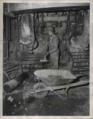 1952 Press Photo American Steel & Wire Company Worker is Cleaning Coke & Slag Up