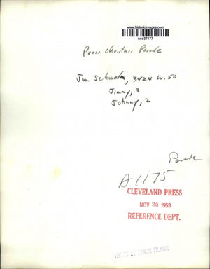 1953 Press Photo Man Holding Children to Watch Cleveland Press Christmas Parade