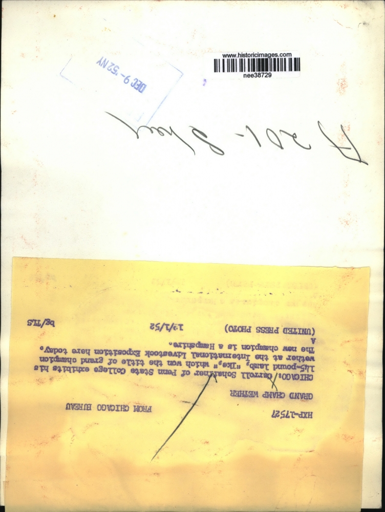 1952 Press Photo Carroll Schaffner of Penn State Colllege exhibits 145lb lamb