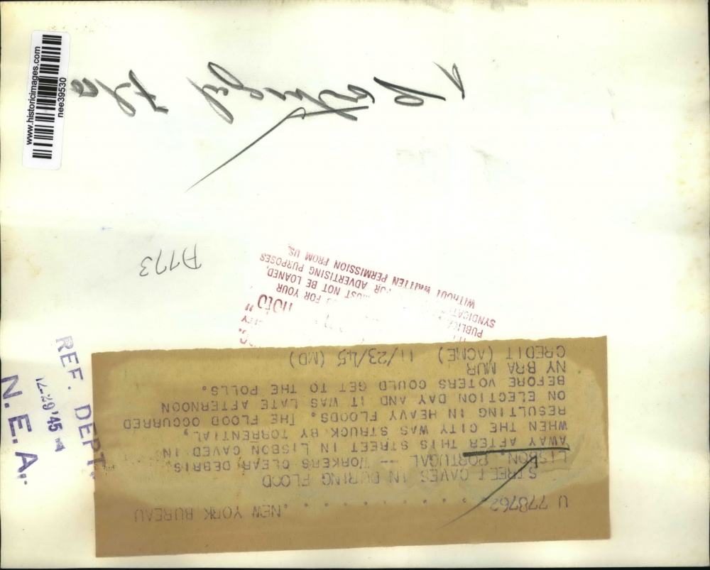 1945 Press Photo Workers Clear Debris after Road Caves in Libson, Portugal