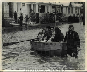 1973 Press Photo People Standing on High Ground from a Flooded Island in Detroit