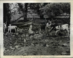 1941 Press Photo of Bessie Wilson and Emma Wilson watering their cattle in