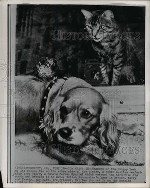 1961 Press Photo Shreveport LA Tweety the robins sits atop Taffy the spaniel.