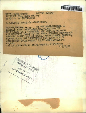 1939 Press Photo Rev. Msgr.Michael J.Lavelle, Francis J. Spellman Sacred Heart