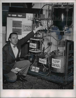 1954 Press Photo Dr. J.C. Shaw of University of Maryland with Mechanical Cow