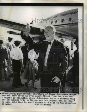1959 Press Photo Sec of State Christian Herter flight Boston