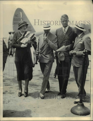 1933 Press Photo Elliott Roosevelt being questioned as he stepped off plane.