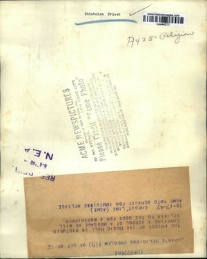 1947 Press Photo The Priest of ISe Music Hall carrying a scroll of message.