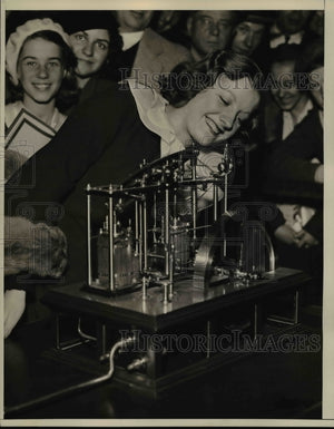 Miss Dorothy Jones is trying to figure out the walking beam engine, operated by steam actually works.