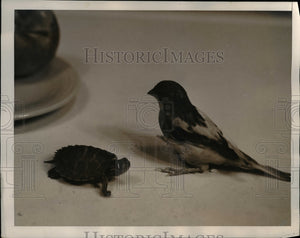 1940 Press Photo of a turtle named Ludwig and a canary named Francois.