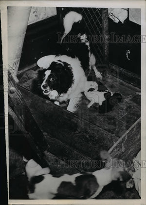 1952 Press Photo Spitz with Puppies Living in Apartment with Mrs. Edna Stone