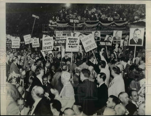 1948 Press Photo of a Taft sign in crowd of Dewey signs at the convention hall