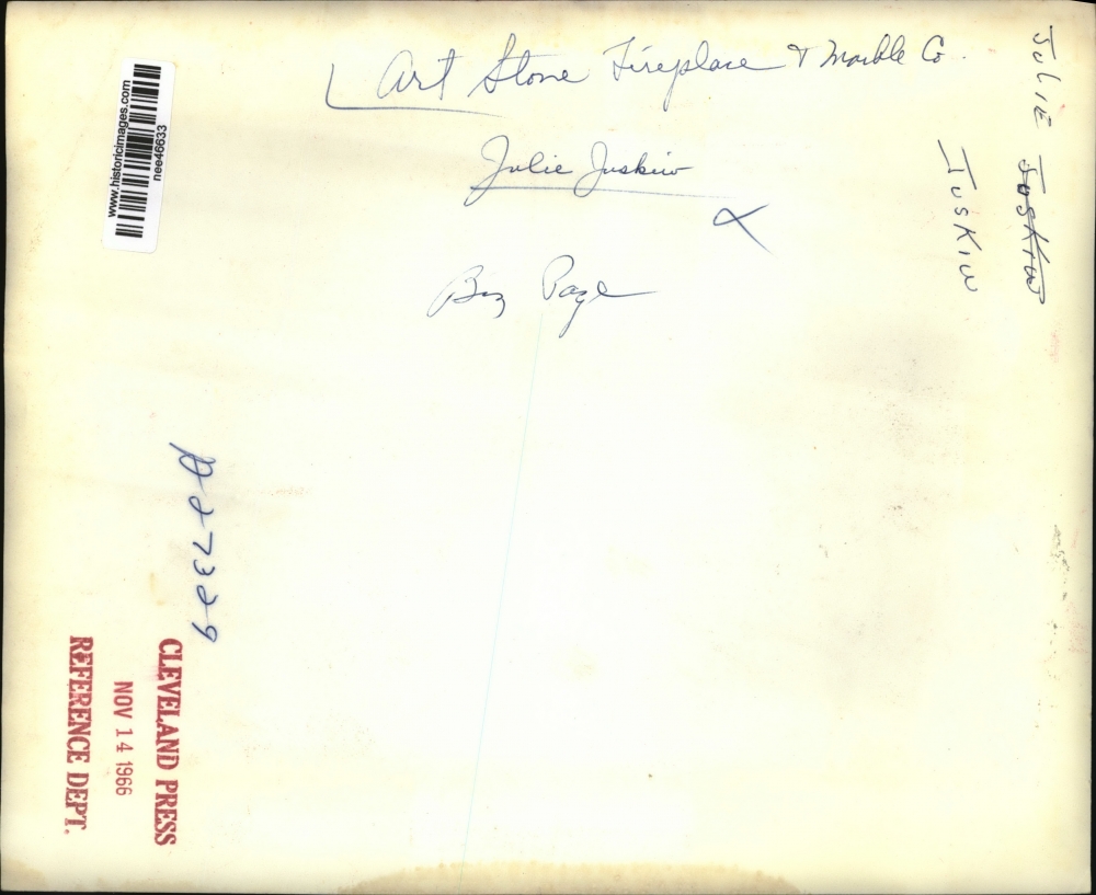 1966 Press Photo of Julie Juskew in front of fireplaces.