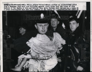 1956 Press Photo Officer Walter France Carries Child From Tenement Fire