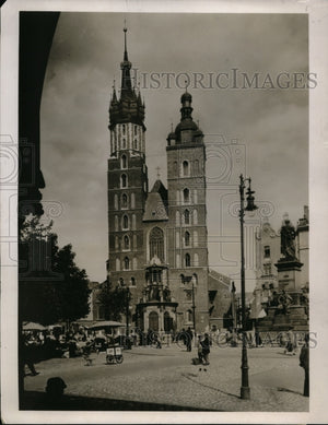 1937 Press Photo Tower of St. Mary's Chruch in Cracow Sounds Hourly Warning