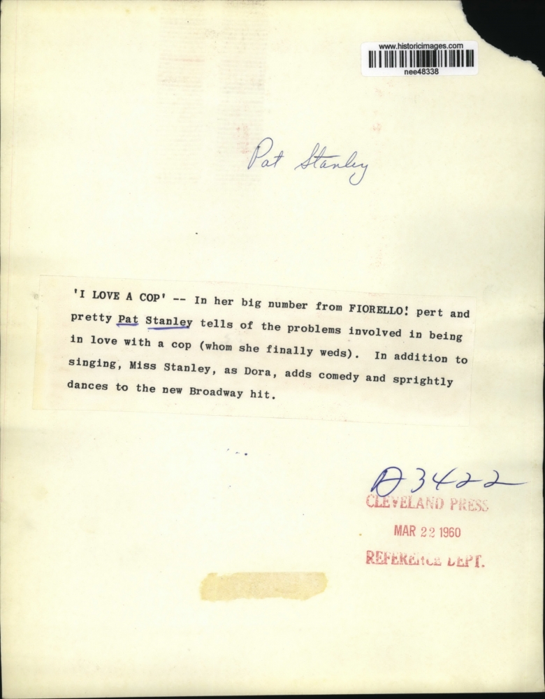 1960 Press Photo Pat Stanley Singer Broadway Hit Fiorello!