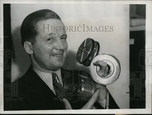 1934 Press Photo Inventor McKinley Palmer Shows Automatic Clutch - nee48851