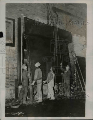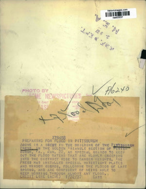 1937 Press Photo Pittsburg Press guards keep out the floods waters in the Bldg.