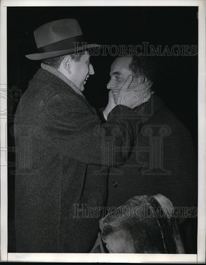 1942 Press Photo French refugees arrive NY, Norris Laipsker meets Albert Guitman