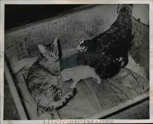 1952 Press Photo Hen Mothering Two Kittens in Horn Lake Mississippi - nee58008
