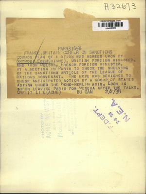 1938 Press Photo British Foreign Minister Anthony Eden Confer With France