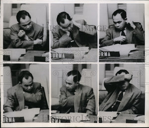 Sao Pyi a member of Burmese Parliament caught in candid poses during a committee discussion on the racial problems in South Africa.