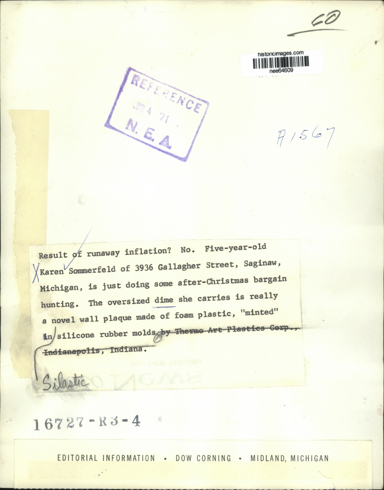 1971 Press Photo Karen Sommerfeld, Oversize Dime Saginaw, Michigan