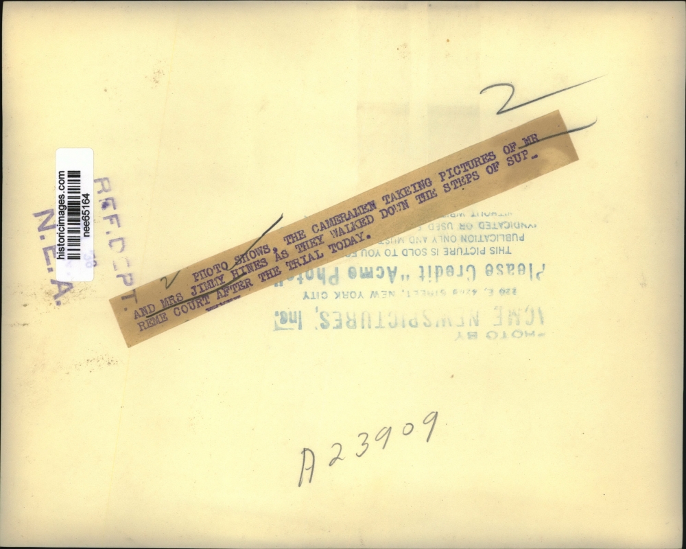 1936 Press Photo Mr and Mrs Jimmy Hines walking down steps of Supreme Court.