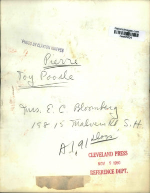 1950 Press Photo Pierre Toy Poodle Owned bu Mrs EC Bloomberg - nee65834