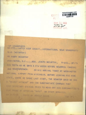 1954 Press Photo Sen. Joseph McCarthy says few words before cameras and newsmen.