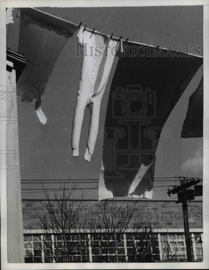 1958 Press Photo Rutland Vt Winter draws to close as long johns make last wash.