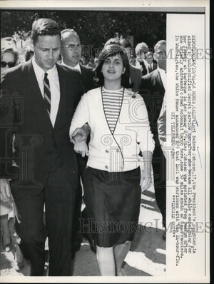1964 Press Photo Luci Baines Johnson assisted from podium addressing crowd.