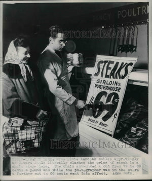 1948 Press Photo Mrs Elsie Lemczak Happy Steak Price is Reduced - nee70027