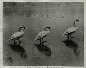 1933 Press Photo Swans tread over ice on Serpentine Lake in Hyde Park