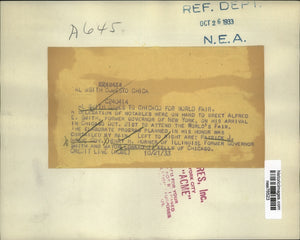 1933 Press Photo Former Governor of New York Al Smith At Chicago Worlds Fair