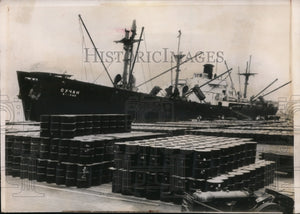1948 Press Photo Red Freighter Suchan takes on 65-octans Gasoline and fuel oil