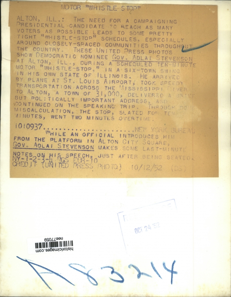1952 Press Photo Governor of Illinois Adlai Stevenson Campaigning Alton City