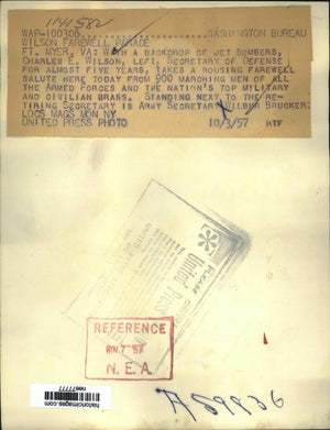 1957 Press Photo Ft Myer Va Charles E Wilson Sec of Defense, Army Sec W Brucker