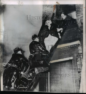 1950 Press Photo Mrs Lena Dorherty Rescued from 2 Alarm Fire in Boston