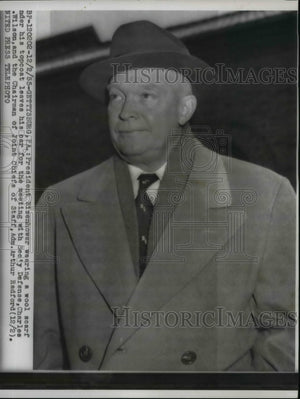 1955 Press Photo President Eisenhower for meet with Secy of Defense C Wilson
