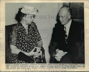 1948 Press Photo Mrs. Eleanor Roosevelt chats with Dwight D. Eisenhower.