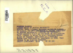1938 Press Photo Former Kansas Governor Alfred Landon, Boston U pres Dan Marsh