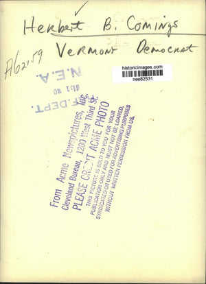 1940 Press Photo Herbert B Comings a Vermont Democrat - nee82531