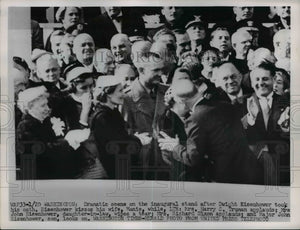 1953 Press Photo Inaugural scene in DC of President Eisenhower kissing Mamie