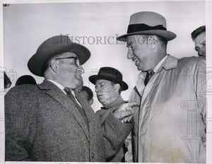 1956 Press Photo Adlai Stevenson and Joe Smith meet at O'hare Field - nee88283