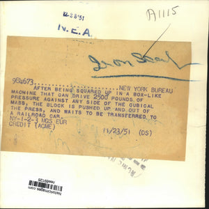 1951 Press Photo Iron Scarps being squared up in a Box like machine - nee89126