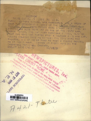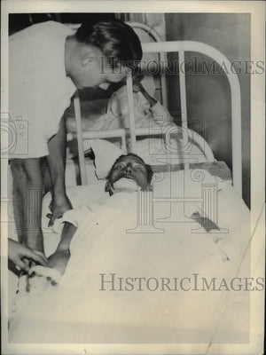 1931 Press Photo Peter Mooney in Chicago hospital from fire at Colony Theater