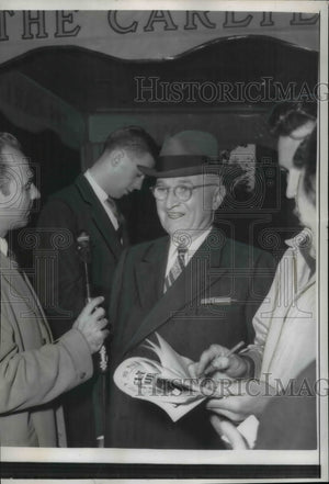 1956 Press Photo Pres. Harry Truman surrounded by newsmen at New York