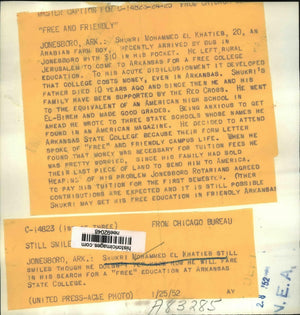 Shukri Mohammed El Khatieb searches for free education at Arkansas State College.