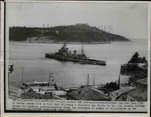 British cruiser HMS Liverpool reported late after gun battle in Port Said between the British and Egyptian guerrillas.